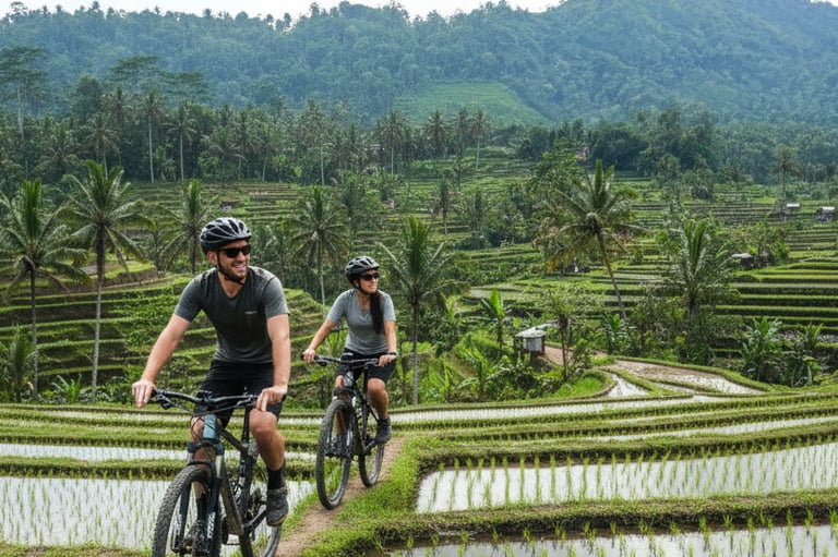 Description: Continuing your journey through Bali's heartland, immerse yourself in the emerald splendor of the Jatiluwih Rice Terraces, a designated UNESCO World Heritage site. These sprawling, cascading paddies are a testament to the traditional Balinese "Subak" irrigation system, a democratic and community-based system for water management. A cycling tour through Jatiluwih offers an intimate and refreshing way to experience this breathtaking landscape. Pedal along narrow paths, past local farmers tending their crops, and soak in the panoramic views of vibrant green stretching as far as the eye can see. It's an active yet peaceful way to connect with Bali's agricultural soul and stunning natural beauty.