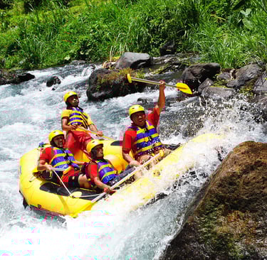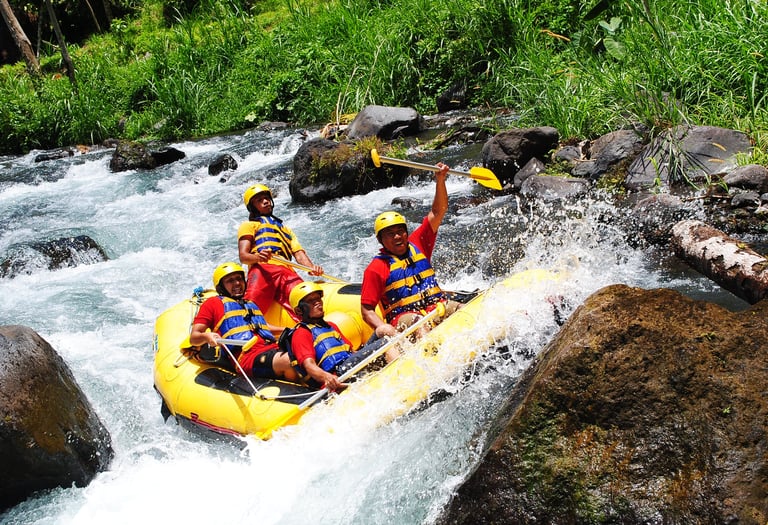 Description: The Telaga Waja River, located in eastern Bali, is famous for offering an exhilarating and scenic white-water rafting experience. Known for its clear waters, consistent flow, and beautiful jungle surroundings, it's a popular choice for both beginners and experienced rafters. The journey spans approximately 11-13 kilometers, taking about 2-2,5 hours to navigate through exciting rapids, natural waterfalls, and lush rice paddies. A highlight of the trip is often a thrilling 4-meter drop at the Bajing Dam, which adds an extra splash of adventure. Professional guides ensure safety while providing an unforgettable ride through Bali's stunning natural landscape. The experience usually concludes with a well-deserved buffet lunch.