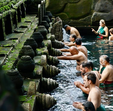 Description: On the spiritual heartland side of Ubud, you'll visit Tirta Empul Temple, one of Bali's most revered water temples. Famed for its holy spring water, this temple is where Balinese Hindus go for ritual purification. Participating in a Melukat (purification ceremony) at Tirta Empul is a profound and deeply spiritual experience. Following the guidance of local priests, you'll immerse yourself in the sacred pools, moving through a series of fountains (pancuran), each believed to cleanse different aspects of the self and soul. It's a unique opportunity to engage deeply with Balinese spiritual traditions and find a sense of inner peace.