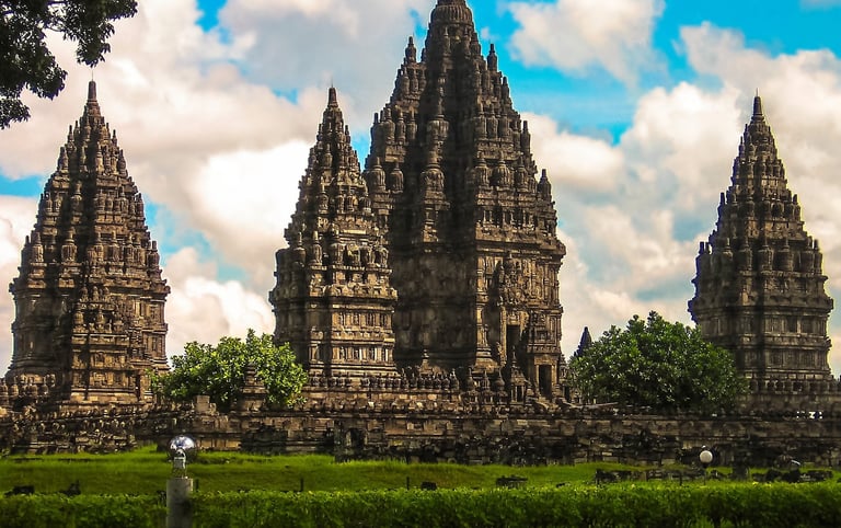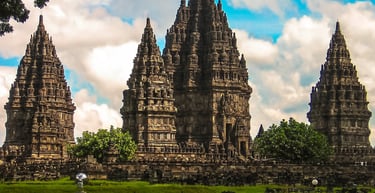 Prambanan Temple: The largest Hindu temple complex in Indonesia, known for its tall, pointed architecture dedicated to the Trimurti (Brahma, Vishnu, and Shiva) (a UNESCO World Heritage Site).