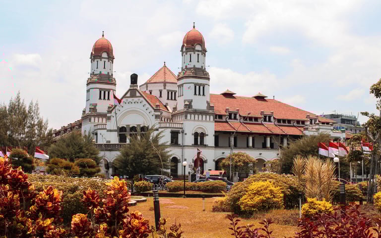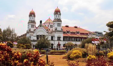 Lawang Sewu (Thousand Doors): A massive, architecturally significant former Dutch colonial railway headquarters in Semarang, famous for its numerous arches and historical significance.
