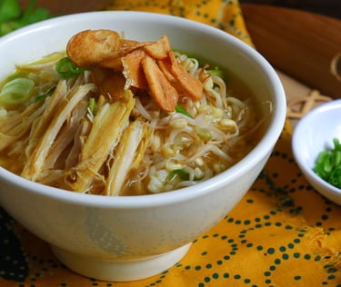 Soto Kudus: A lighter, chicken or beef broth soup from Kudus, usually seasoned with garlic and kemiri (candlenut). Unlike other soto variations, it is often served in a small bowl with a spoon, accompanied by side dishes like quail eggs or tempeh.