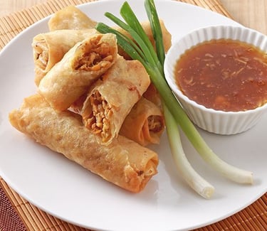 Lumpia Semarang: A spring roll originating from Semarang, known for its savory filling of sautéed bamboo shoots (rebung), dried shrimp, and chicken/prawn. It is served with a sweet, thick, and pungent sauce made from palm sugar and tapioca starch.