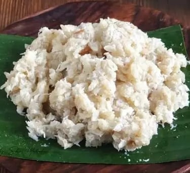 Kalumpe (Karungus): A dish made from pounded or finely mashed young leaves of the cassava plant, mixed and cooked with spices (like chili, garlic, and shallots) and sometimes smoked fish or terasi (shrimp paste).