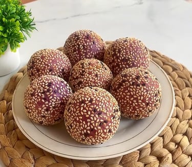 Onde-Onde Ubi Ungu: A unique local adaptation of the classic onde-onde (glutinous rice ball). In Sulteng, it is often made using purple sweet potato (ubi ungu), filled with palm sugar, and coated in sesame seeds.