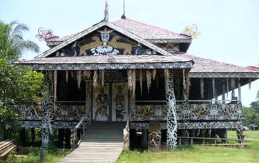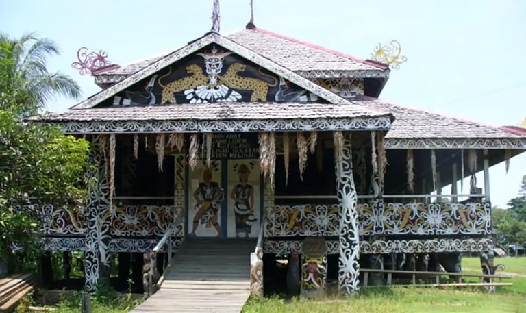 Lamin (Longhouse): The traditional communal house of the Dayak tribes, known for its sheer size and elaborate exterior carvings.