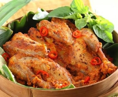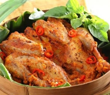 Ayam Cincane: A celebratory chicken dish, usually cooked in a rich coconut milk sauce infused with turmeric, ginger, and candlenut (kemiri), giving it a distinctive yellow color and strong aroma (shared with North Kalimantan).