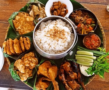 Nasi Bekepor: A traditional Kutai Malay rice dish. Rice is cooked with coconut milk, spices, and sometimes smoked fish, and traditionally served in a metal pot, accompanied by Sambal Raja (Royal Chili Sauce).