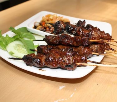 Sate Payau: Satay made from deer meat (payau), a traditional delicacy of the local communities. The meat is marinated in a strong spice mixture and grilled, often served with a sweet soy sauce and chili sambal.