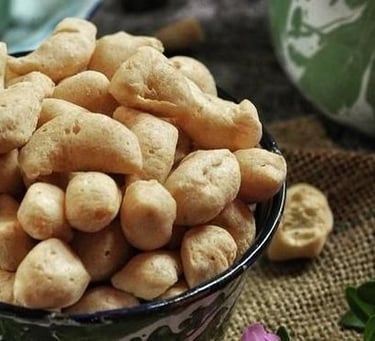 Amplang: A highly popular local snack. These are small, crunchy savory crackers made primarily from mackerel or snakehead fish and sago flour, often shaped like small pillows or nuggets.