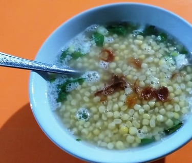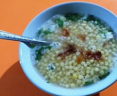 Binte Biluhuta (Milu Siram): The soul food of Gorontalo. It is a savory soup made from white corn kernels, cooked with grated coconut, shrimp, and skipped jack tuna (cakalang). It is seasoned with lime, basil, and chili, offering a sweet, savory, and fresh flavor profile.