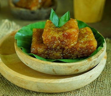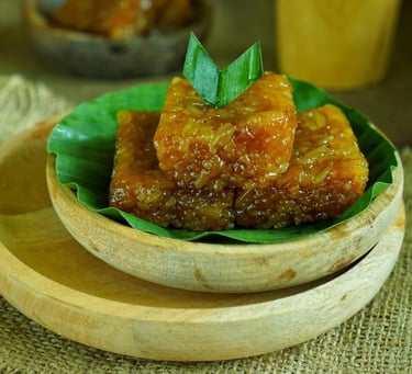 Tili Aya: A traditional sweet treat often eaten during Ramadan (Sahur) or breakfast. It is a steamed dessert made from brown sugar (palm sugar), coconut milk, and eggs, resulting in a custard-like texture that is very sweet and energizing.