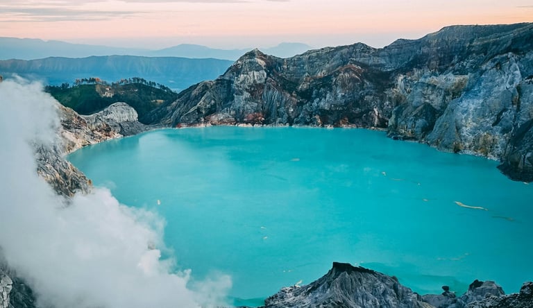 Apa itu: Saat matahari terbit, nyala api biru memudar, dan lanskap megah pun tersingkap. Titik fokus bergeser ke Danau Kawah Ijen, yang memegang gelar sebagai danau kawah asam terbesar di dunia. Warnanya yang pirus susu yang menawan disebabkan oleh tingginya konsentrasi asam sulfat terlarut dan bahan kimia vulkanik lainnya.