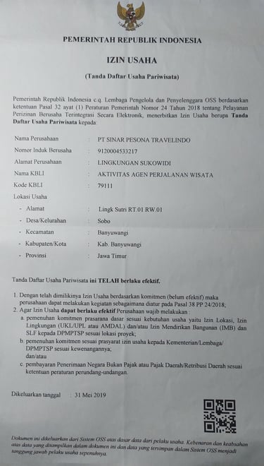 PT. Sinar Pesona Travelindo atau yang dikenal Good Plan Travel adalah Perusahaan yang bergerak dalam bidang Travel & Transport Management yang selalu mengerti dan mengutamakan kebutuhan konsumen. Dengan cara ini kami akan memberikan pelayanan sesuai dengan kebutuhan perjalanan Anda secara Personal, dengan biaya yang sesuai dengan anggaran Anda. Kami hadir Sejak tanggal 28 Mei 2019 di Kota Banyuwangi, Jawa Timur