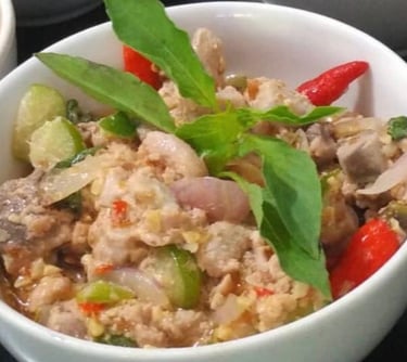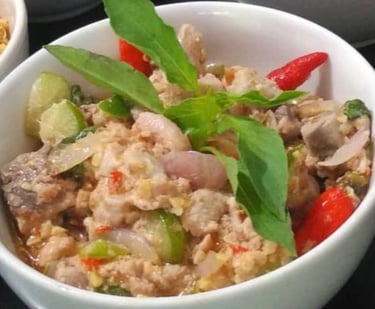 Gohu Ikan: Often called "Ternate Sashimi." It features fresh raw tuna diced and marinated in salt, lime juice, and basil leaves, then topped with hot oil, fried shallots, and chili. It is fresh, savory, and not "fishy" at all.