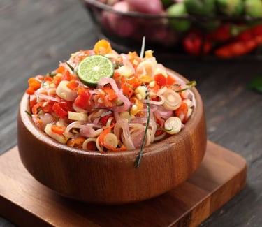 Sambal Colo-Colo: The most famous condiment. It requires no cooking; it consists of chopped chilies, shallots, tomatoes, and green lime (lemon cui), all drenched in sweet soy sauce (kecap manis). It is the perfect pair for grilled fish.