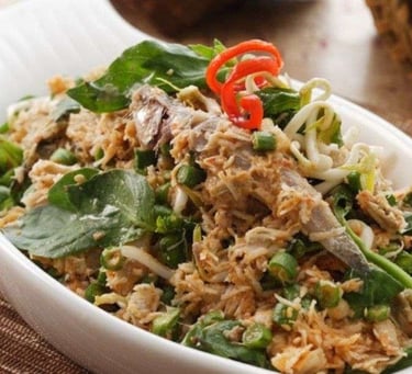 Kohu-Kohu: A salad similar to Javanese Urap. It consists of blanched vegetables (long beans, bean sprouts, spinach) mixed with grated coconut, lime juice, spices, and shredded smoked fish (ikan cakalang or tongkol).