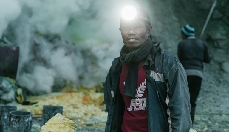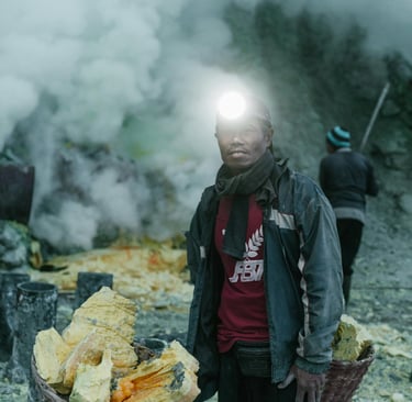 During your trek, especially near the crater floor, you will encounter the strong, resilient sulfur miners. These courageous men work under extreme, hazardous conditions, carrying heavy baskets of sulfur (often weighing 70–100 kg) up the crater wall and down the mountain path for meager pay.