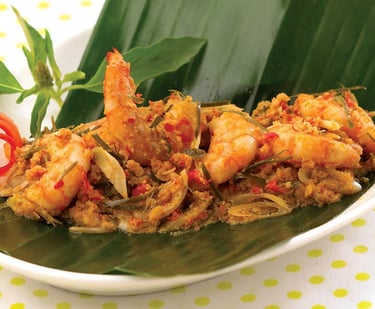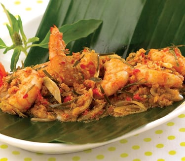 Udang Pepes: Fresh river shrimp or prawns seasoned with strong spices (chili, turmeric, ginger) and wrapped tightly in banana leaves before being steamed or grilled over charcoal.