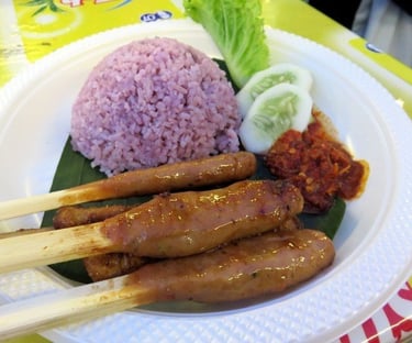 Nasi Subut: A traditional staple dish, particularly among the Dayak and Tidung communities. Rice is cooked with a colorful mixture of mashed purple sweet potatoes and wild cassava leaves, giving it a distinctive color and earthy flavor.