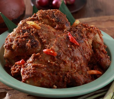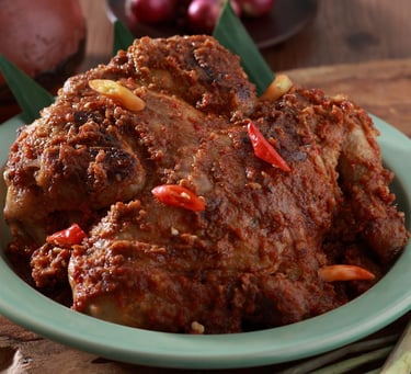 Ayam Cincane: A celebratory dish, often featuring chicken cooked in a sauce rich with coconut milk, kemiri (candlenut), and turmeric, often served during traditional ceremonies.