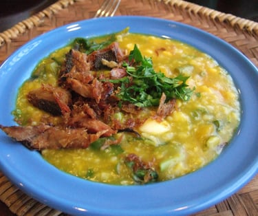 Tinutuan (Manado Porridge): A famous healthy breakfast dish. It is a savory, thick rice porridge cooked with various vegetables, especially pumpkin, cassava, and spinach, served with sambal (chili) and sometimes salted fish.