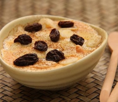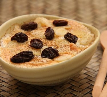 Klappertaart: A signature dessert showing Dutch influence. It is a rich, creamy baked coconut tart made with flour, milk, butter, and slivers of young coconut flesh, often topped with cinnamon and raisins.