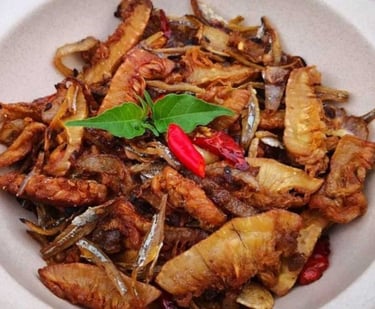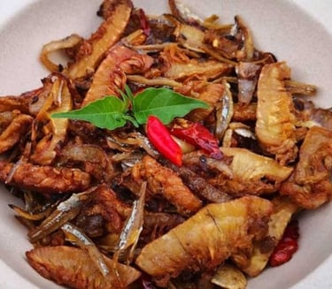 Mandai: A distinct Banjarese preparation made from the white, fibrous interior of the cempedak fruit skin. The skin is fermented, then spiced, and fried or cooked into a savory, slightly sour, and tender side dish.