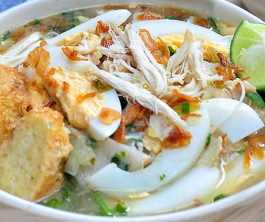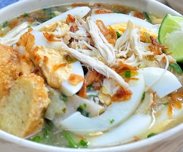 Soto Banjar: The most iconic dish. A savory, fragrant chicken or beef soup, characterized by its creamy, slightly white broth (made without coconut milk, but often using condensed milk or cream instead) and spiced with aromatic ingredients like star anise, cloves, and cinnamon. It is served with vermicelli noodles, potato cakes, and lime.