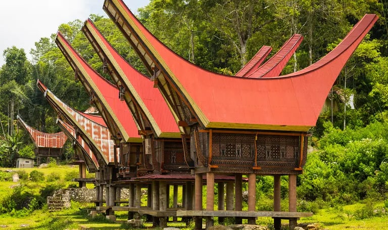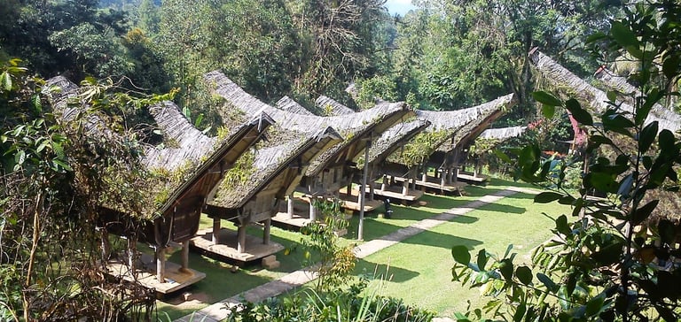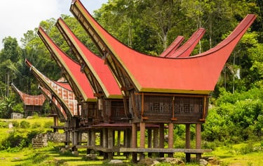 Tongkonan House: The striking, boat-shaped traditional houses of the Toraja people (found in the north of the province), famous for their complex carvings and curved roof structures.