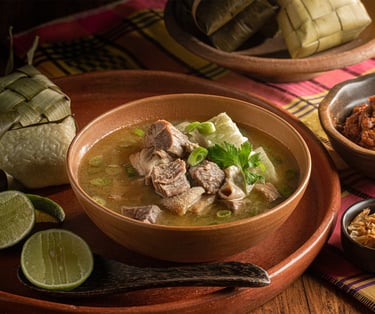 Coto Makassar: The most famous dish. A rich, thick, and savory soup made from beef and offal, seasoned with ground peanuts, various spices, and served hot with ketupat (rice cakes).