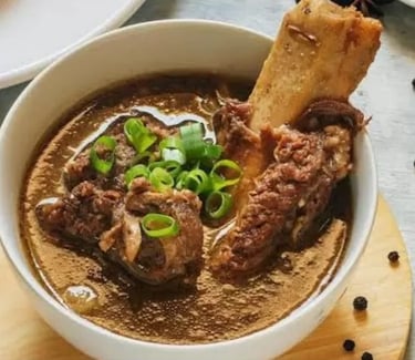 Konro: Ribs cooked in a dark, rich broth. Konro Bakar (Grilled Konro) is particularly popular, where the ribs are first boiled until tender, then grilled and slathered with a thick, savory-sweet spice paste.