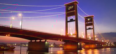Ampera Bridge: The iconic symbol of Palembang, spanning the Musi River. It lights up beautifully at night and is the central feature of the cityscape.