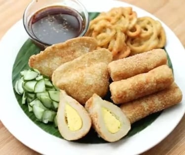 Pempek: The most famous dish. These are savory fishcakes made from fish paste (ikan tenggiri or gabus) and tapioca flour. They come in various shapes (kapal selam, lenjer, adaan) and are traditionally served drenched in a dark, sweet, spicy, and vinegary sauce called cuko.