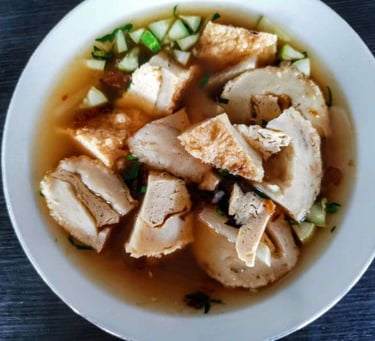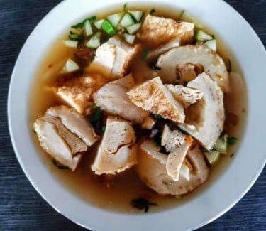 Model: Very similar to Tekwan, but the fish paste is shaped into larger, solid pieces (often hollowed out and filled with ingredients like fermented soybeans or dried shrimp).