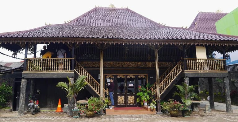 Rumah Limas: The traditional house of South Sumatra, known for its distinctive five-tiered roof structure that reflects the social hierarchy of the community.