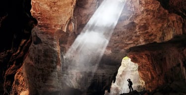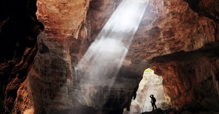 Goa Jomblang: A natural, vertical cave famous for its subterranean forest and the spectacular "Light of Heaven" phenomenon, where sunlight streams directly through an opening.