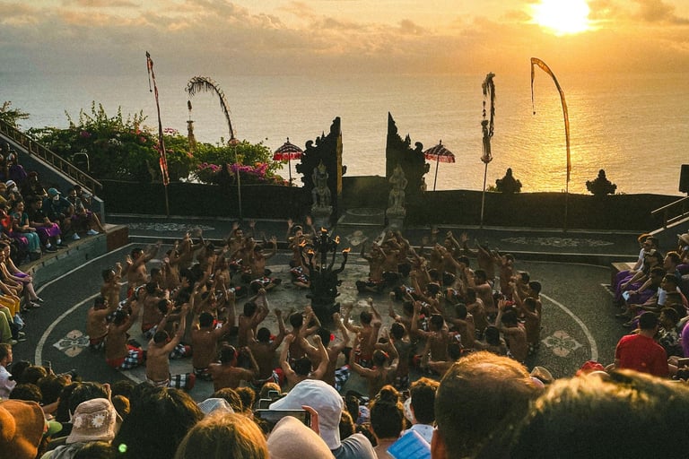 Kecak Fire Dance: The core cultural focus, framed by the legendary Balinese sunset, to witness an ancient Hindu epic of fire, voice, and narrative.